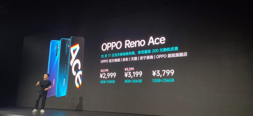 最终,来说下我们关怀的价格体系:OPPO Reno Ace价格为:8GB+128GB官方价格3199元、8GB+256GB官方价格3399元、12GB+256GB价格3799元,10月17日敞开抢先购,8GB+128GB抢先价2999元、8GB+256GB抢先价3199元。